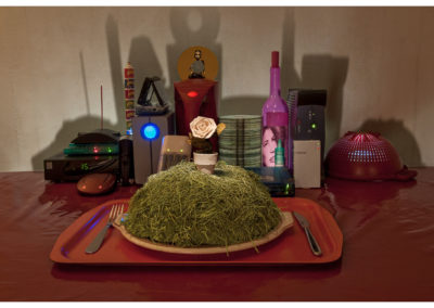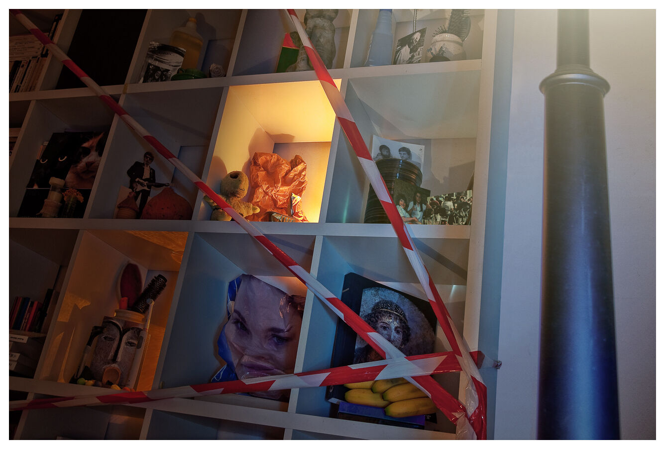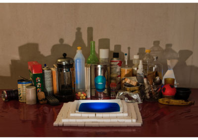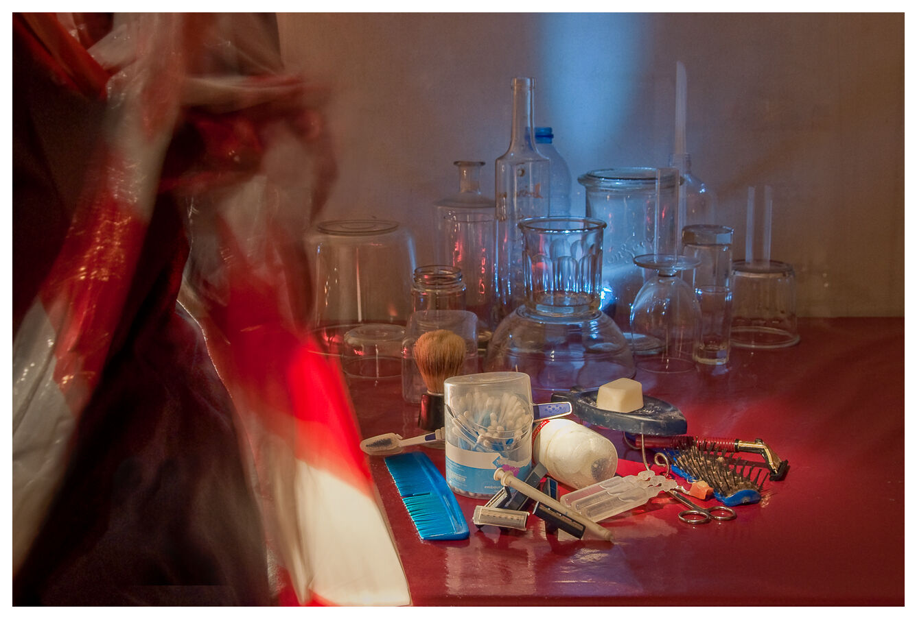 Ces photos ont été réalisés pour une exposition collective sur le thème de la nuit urbaine. J’ai choisi de la reconstituer à la maison en mélangeant petits veilleurs électriques colorés que l’on découvre quand on se lève la nuit et monde onirique qui nous revient quand on se recouche.